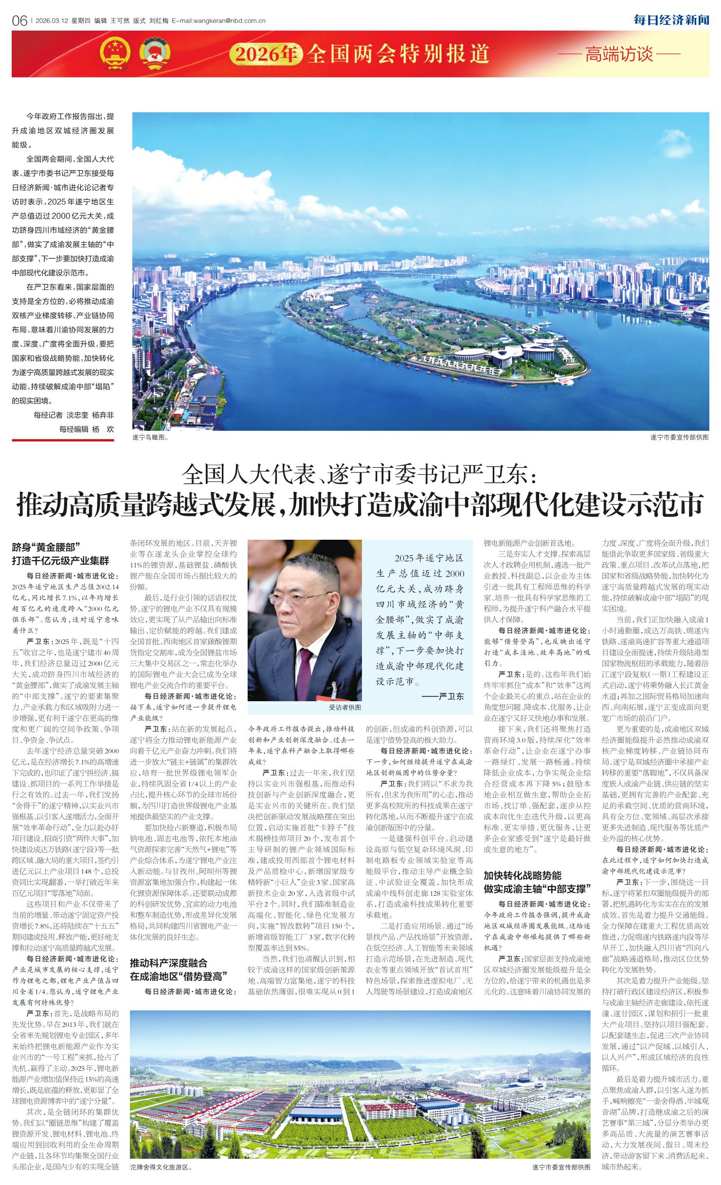 全国人大代表、遂宁市委书记严卫东:推动高质量跨越式发展,加快打造成渝中部现代化建设示范市
