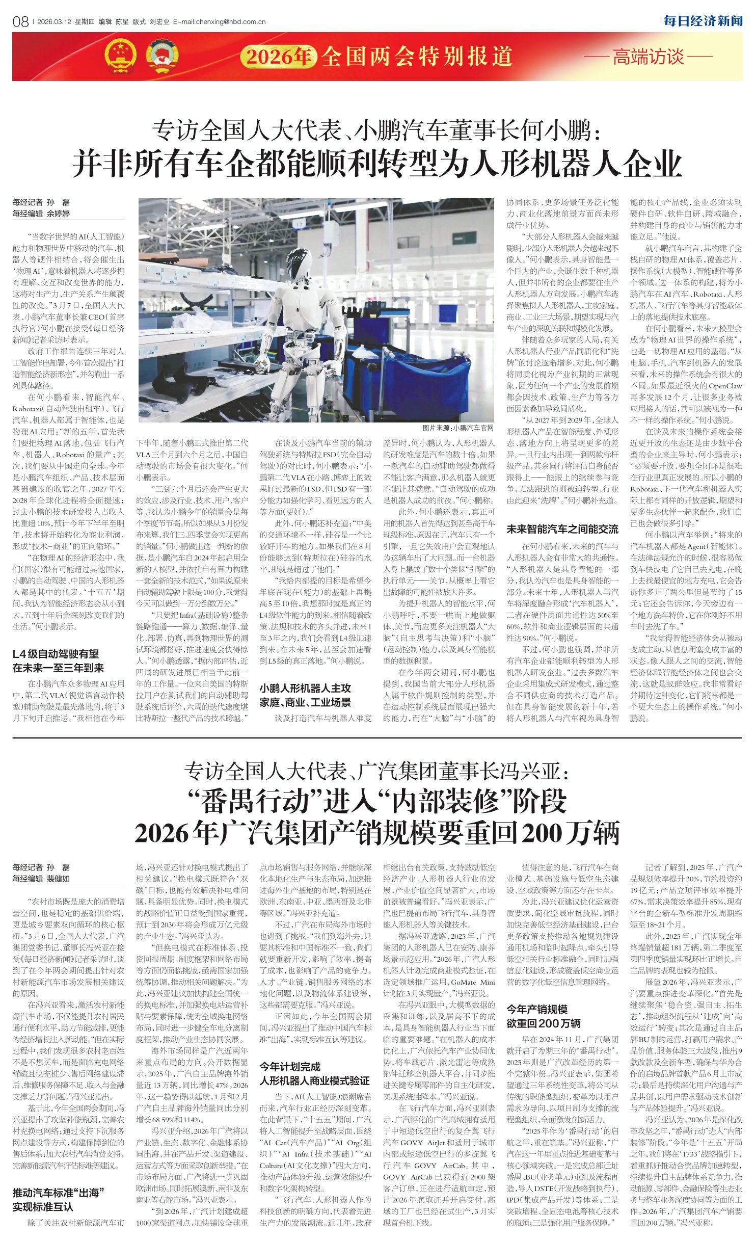 专访全国人大代表、小鹏汽车董事长何小鹏:并非所有车企都能顺利转型为人形机器人企业