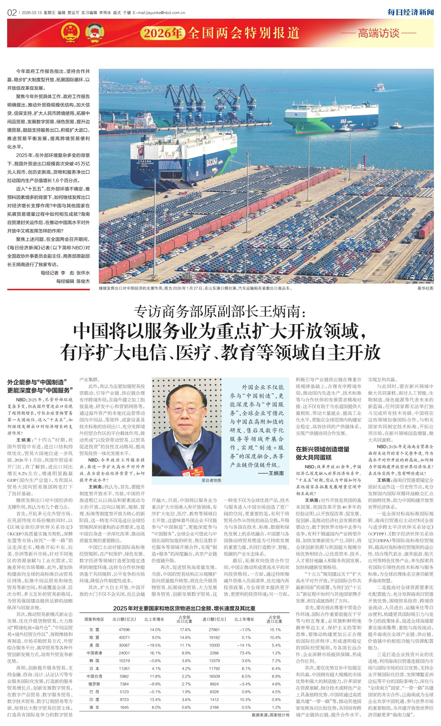 专访商务部原副部长王炳南:中国将以服务业为重点扩大开放领域,有序扩大电信、医疗、教育等领域自主开放