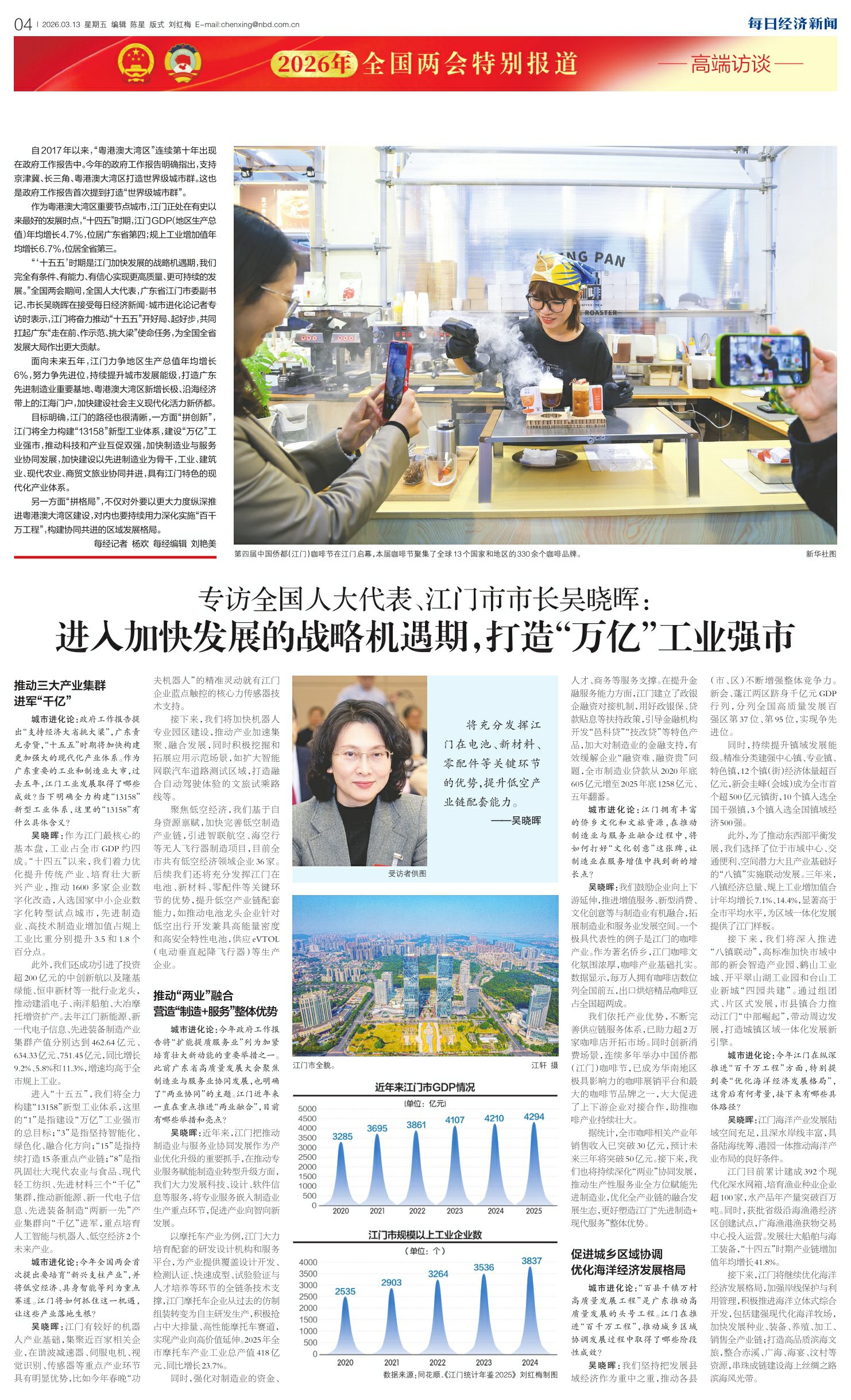 专访全国人大代表、江门市市长吴晓晖:进入加快发展的战略机遇期,打造“万亿”工业强市