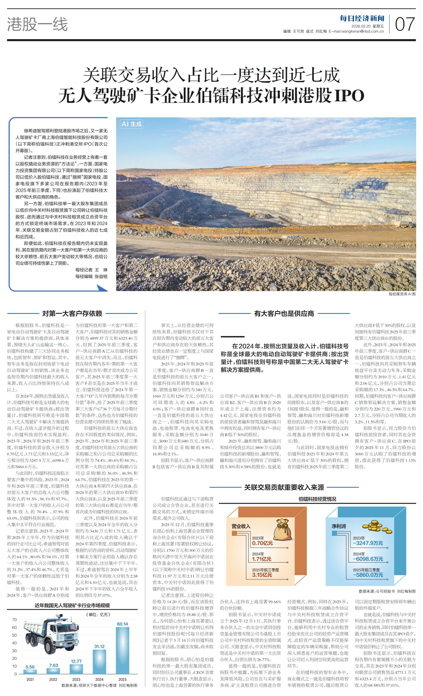 关联交易收入占比一度达到近七成 无人驾驶矿卡企业伯镭科技冲刺港股IPO