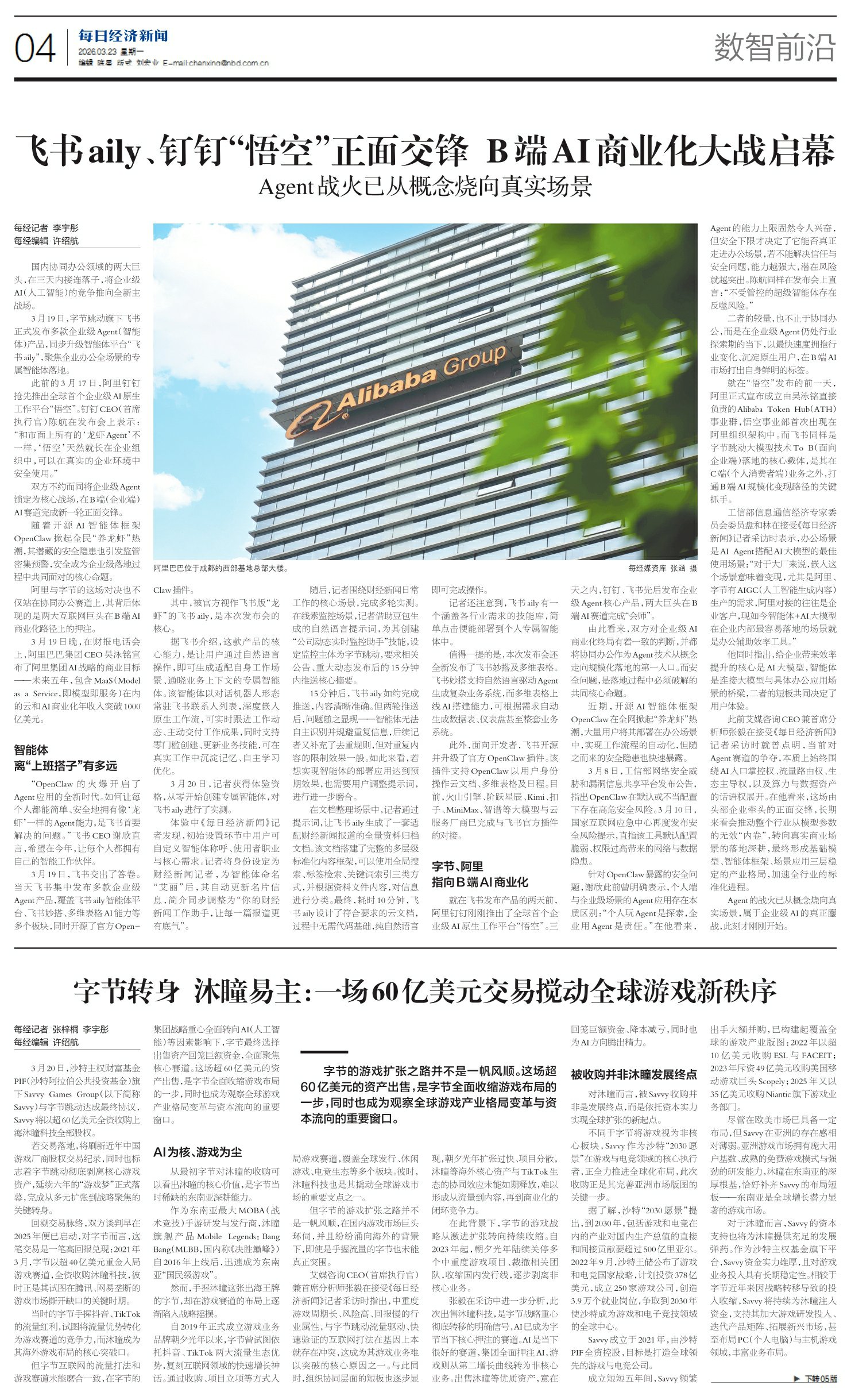 飞书aily、钉钉“悟空”正面交锋 B端AI商业化大战启幕