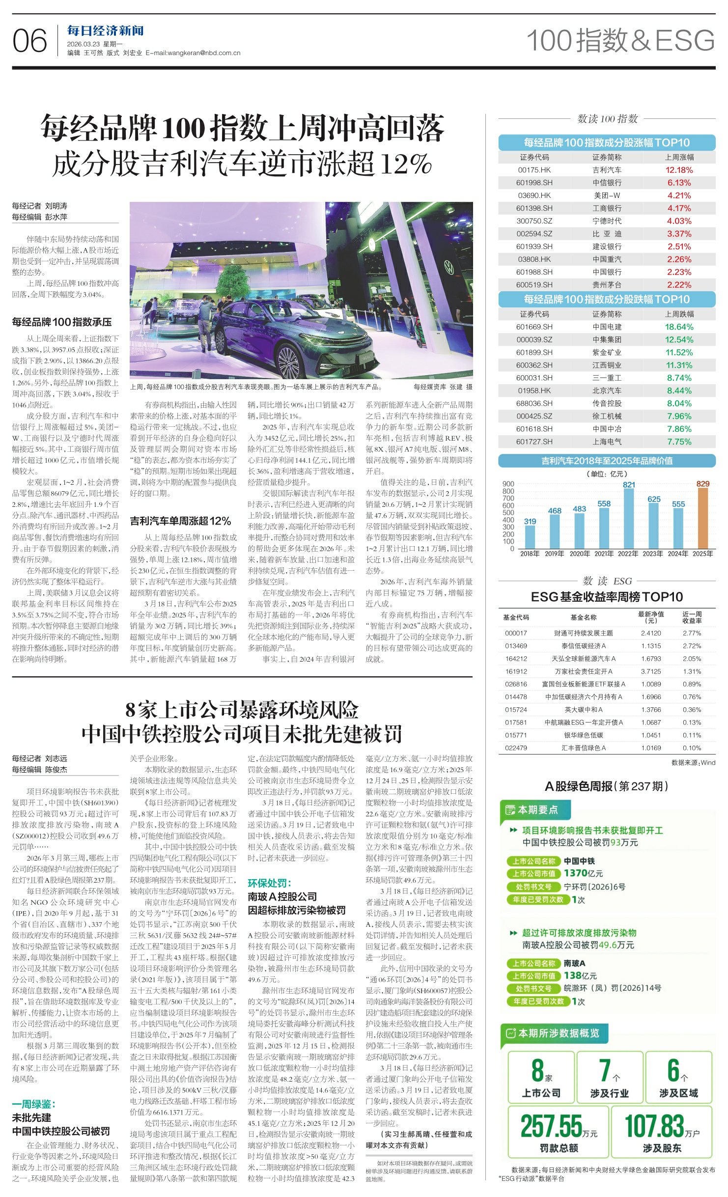 每经品牌100指数上周冲高回落 成分股吉利汽车逆市涨超12%