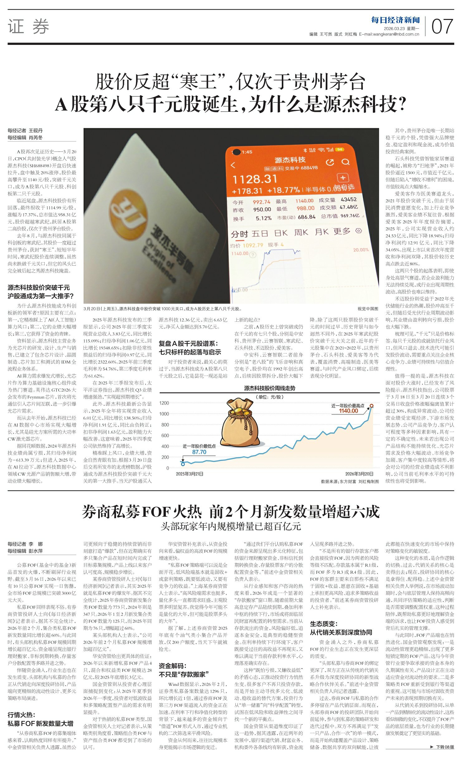 股价反超“寒王”,仅次于贵州茅台 A股第八只千元股诞生,为什么是源杰科技?