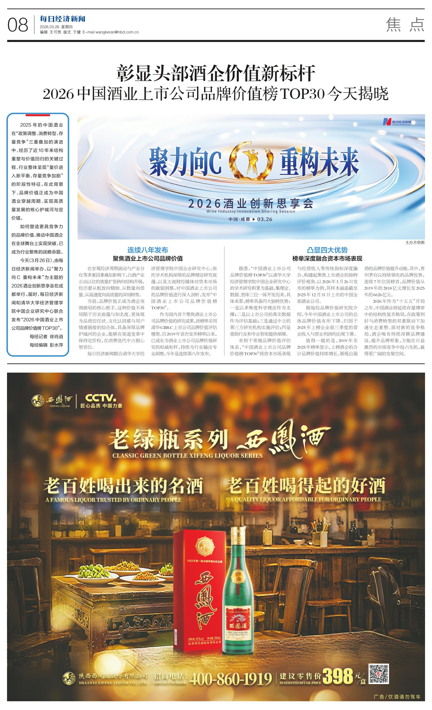 彰显头部酒企价值新标杆 2026中国酒业上市公司品牌价值榜TOP30今天揭晓