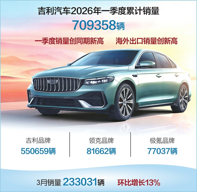 不过,若拉长到一季度累计销量来看,头部车企的格局出现了明显分化。吉利汽车凭借一季度约70.94万辆的累计销量,以0.89万辆的微弱优势,小幅超越比亚迪的70.05万辆,成功跻身季度销量第二名。