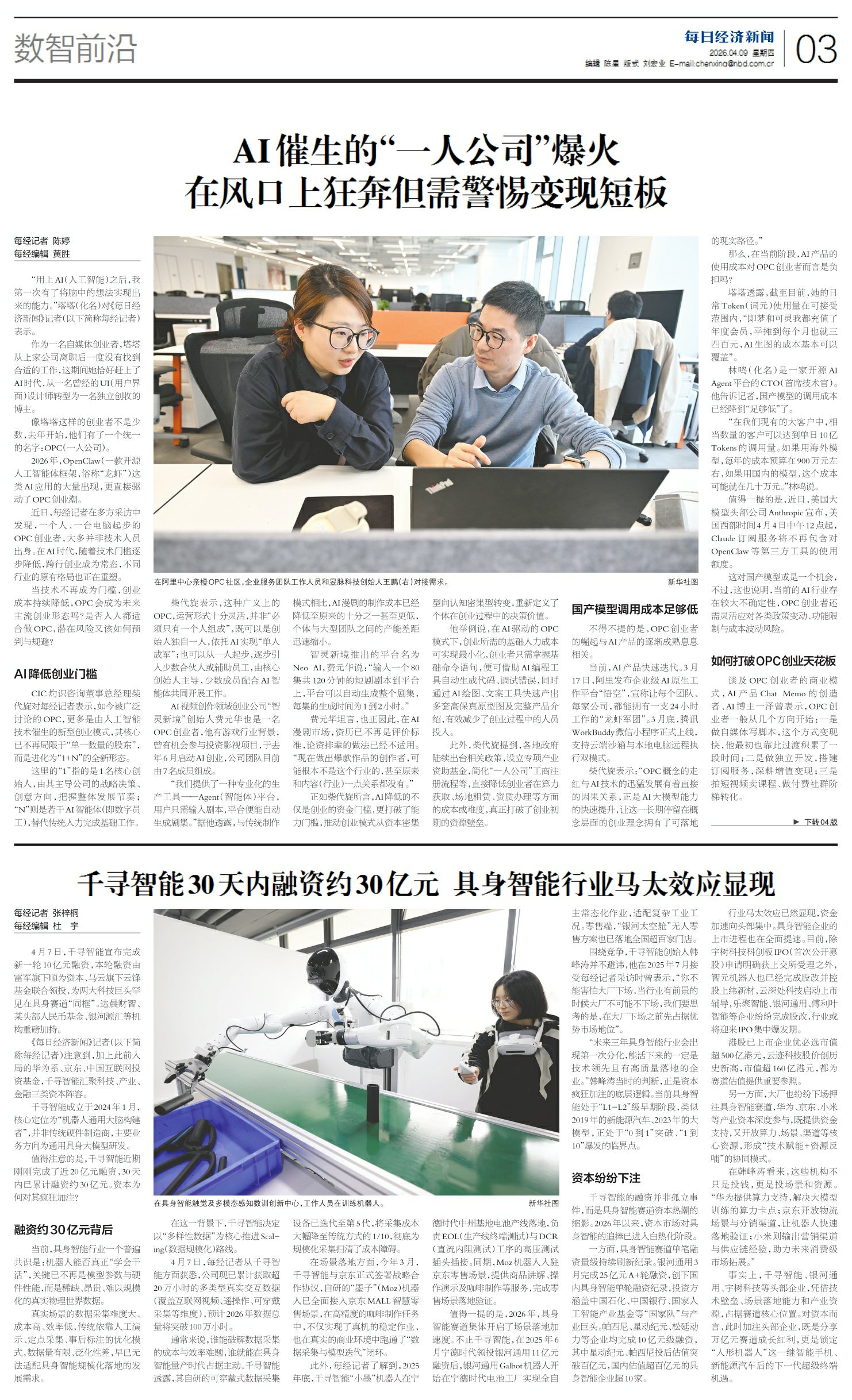 千寻智能30天内融资约30亿元 具身智能行业马太效应显现