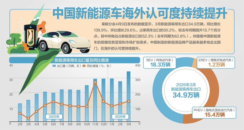 3月新能源乘用车出口同比增139.9%