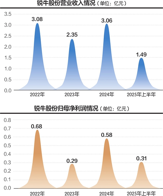 报告期内,锐牛股份的业绩曲线波动较大:营业收入分别为3.08亿元、2.35亿元、3.06亿元和1.49亿元;归母净利润分别为6820.03万元、2886.22万元、5780.69万元和3141.08万元。