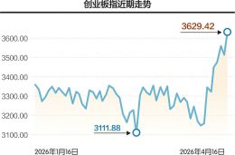 4月16日早间,创业板指强势反弹并突破头一天的高点,最高触及3613.25点。截至午间收盘,创业板指涨2.66%。午后开盘,创业板指进一步“摸高”,最高达到3629.42点。截至当天收盘,创业板指报收于3626.27点,涨幅为3.17%。