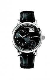 郎格的经典表款LANGE1具备诸多特质,如偏心表盘、大日历显示、三天动力储存,以及尽显无暇工艺的表厂自制机芯。18年前首度面世时,此表便为精密制表业带来新气象,并从此成为朗格的标志。去年亮相的GRANDLANGE1则凭借更纤细流畅的线条以及全新打造的机芯在表坛上大放异彩。制作此表时,朗格研发人员成功保留了LANGE1的72小时动力储存装置,并搭载更精密复杂的单发条盒。新款GRANDLANGE1搭载白金表壳和黑色表盘,黄金镀铑制成的夜光指针和嵌块刻度,令其拥有者在漆黑环境中依然能够清晰读取时间和动力储存指示。
