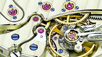 每一枚的朗格机芯都经过两次手工组装,此项传统绝无仅有。机芯在经过第一次组装后,要经过一次“五方位”精密调校,当确保机芯完全精准后,机芯将被完全拆解,制表师在这个阶段会为某些部件加上最后的表面整饰。最后再被组装进铂金或金质表壳,并进行4~6周的测试。