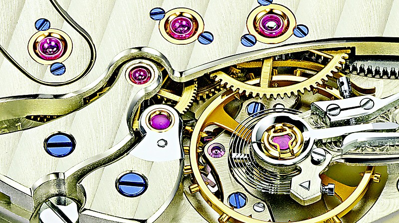 德国的制表工艺,最具代表性的便是由德国银制成的3/4夹板,其次便是蓝钢螺丝固定的黄金套筒、鹅颈式微调、手工雕刻的摆轮夹板、大日历结构等。这些机械设计代表了德国现代腕表的高级专利技术。