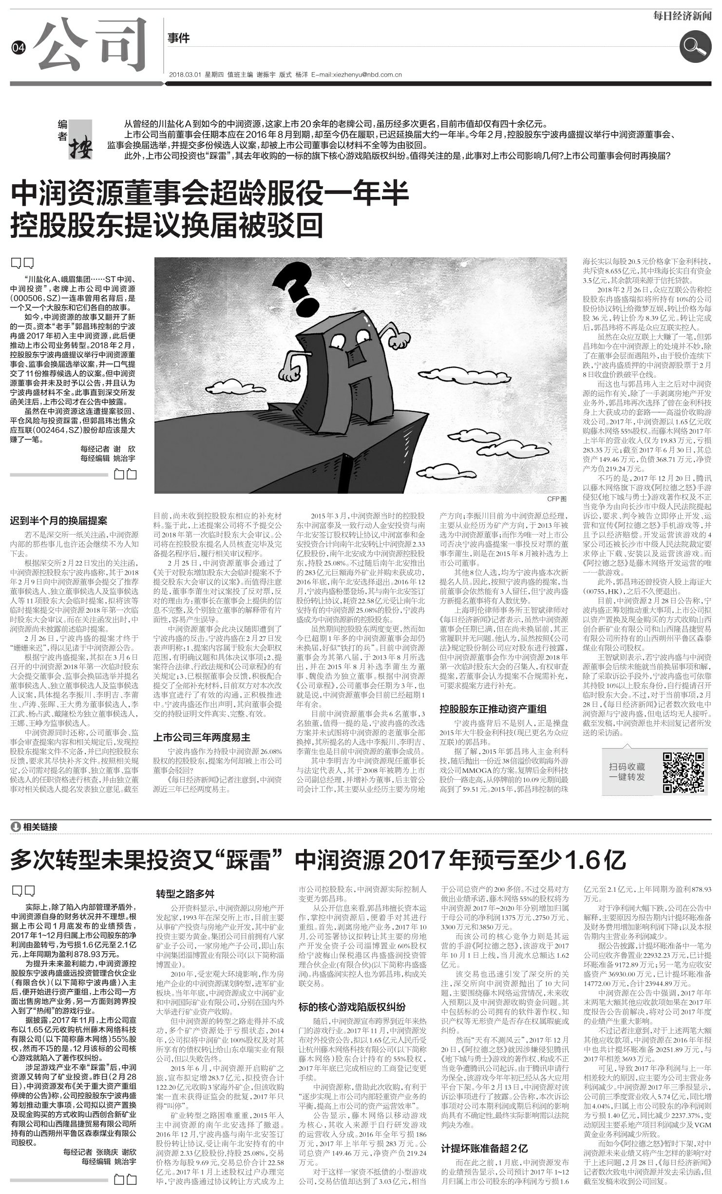 中润资源董事会超龄服役一年半 控股股东提议换届被驳回