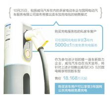 10月25日,包括威马汽车在内的多家电动车企与国网电动汽车服务有限公司(以下简称国网电动汽车)宣布将推出卖车加充电包的销售模式,即购买充电服务包的私家车客户,可在国网充电桩享受3年内5000或1万度免费充电服务。