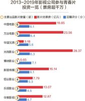 此外,中国电影对青春片也颇为喜爱,主要出品青春片的数量仅次于光线,也共同参与了《致我们终将逝去的青春》,但总票房相比光线相差8.5亿元,《中国合伙人2》和《青春派》都仅有2000多万元的票房。