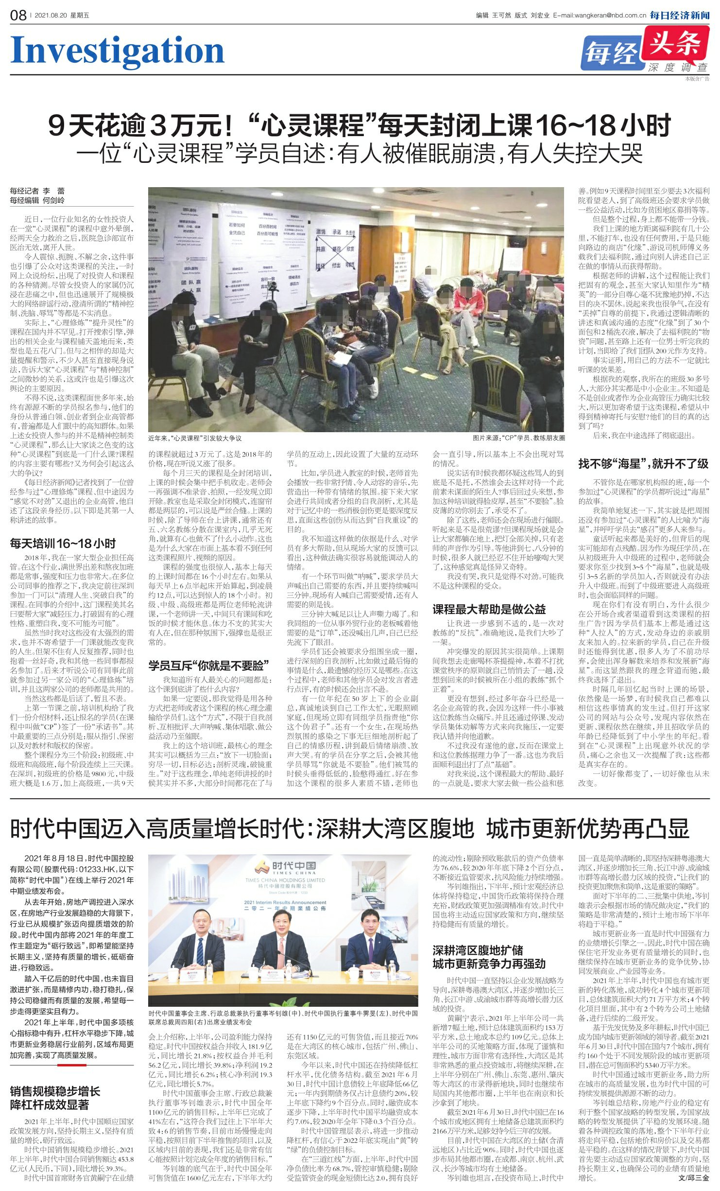 9天花逾3万元!“心灵课程”每天封闭上课16~18小时 一位“心灵课程”学员自述:有人被催眠崩溃,有人失控大哭