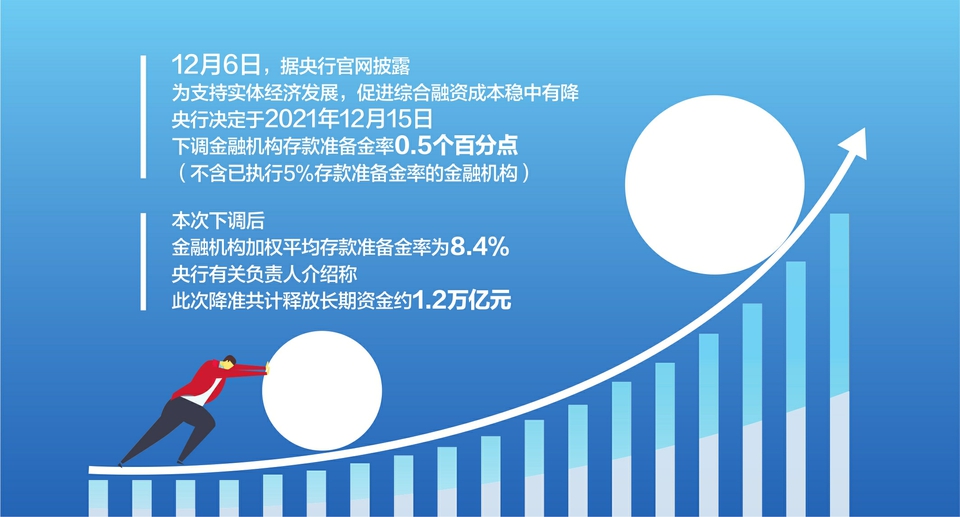 12月6日,中国人民银行表示,决定于2021年12月15日下调金融机构存款准备金率0.5个百分点。