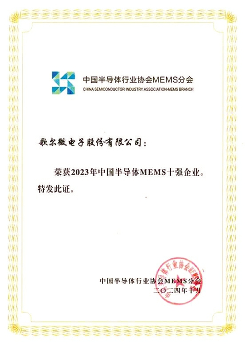 在汽车电子中,语音交互作为智能汽车接收信息和指令的重要方式,为MEMS声学传感器提供了新的发展机遇。歌尔微是我国MEMS传感器和微系统模组行业具有代表性的企业之一。根据Yole的数据,2020~2022年,歌尔微在全球MEMS厂商中排名分别为第6名、第8名和第9名,是全球MEMS厂商十强中唯一一家中国企业,MEMS声学传感器市场份额保持领先。在今年10月举行的第五届中国MEMS制造大会上,歌尔微再次以榜首的成绩,获得由中国半导体行业协会MEMS分会颁发的“中国MEMS十强”荣誉。