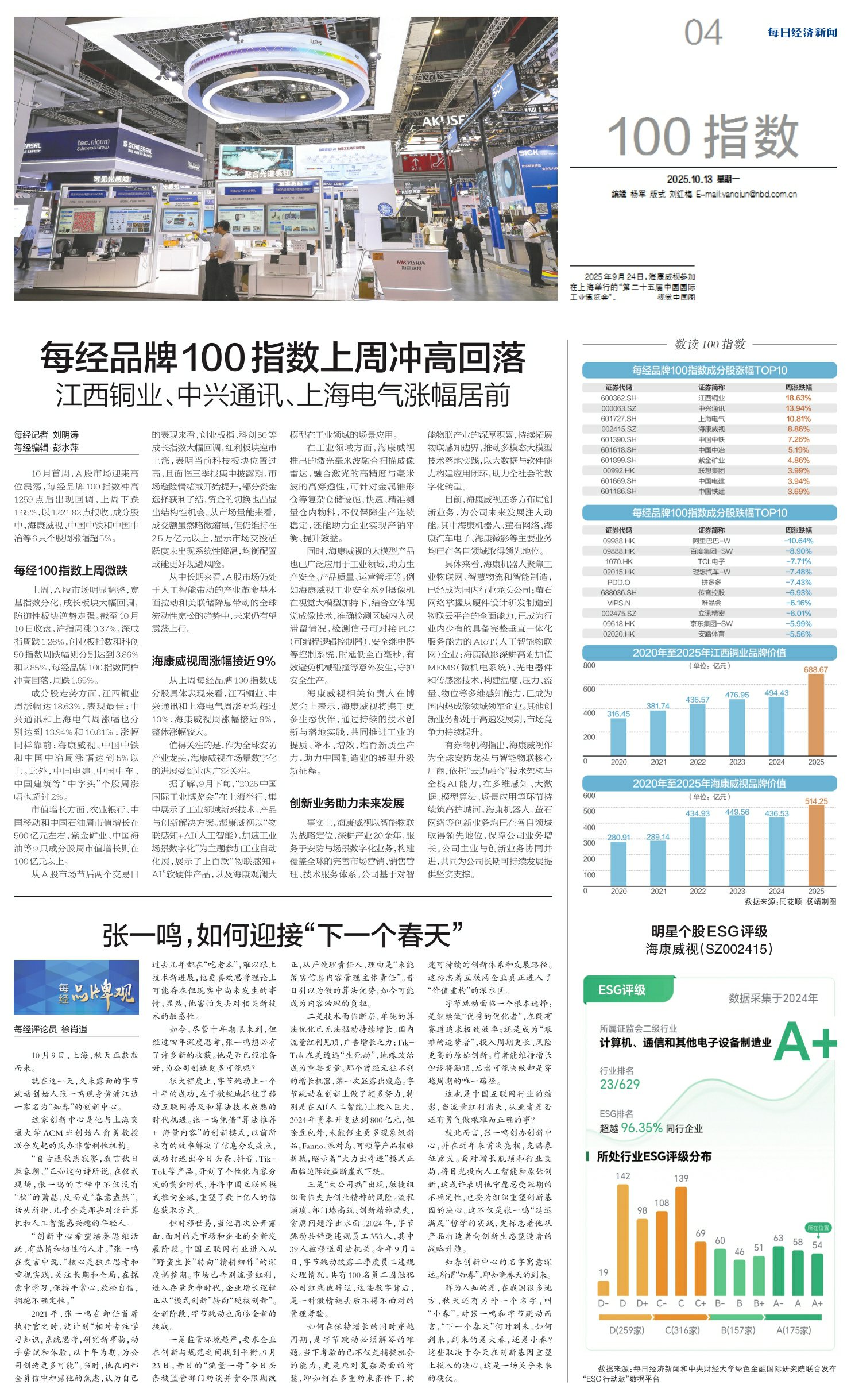 每经品牌100指数上周冲高回落