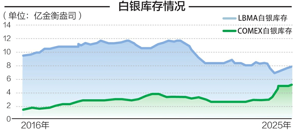 银河期货贵金属高级研究员王露晨对记者表示,近期,实物需求(如印度排灯节前的实物进口需求以及白银ETF需求)的增加,导致LBMA(伦敦金银市场协会)库存降至历史低点,尤其是可灵活取用的白银库存进一步减少,是推动当前行情的关键因素。