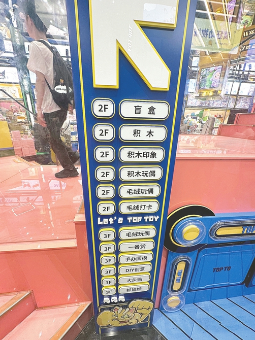2025年3月,TOP TOY在上海南京路开设首家全球旗舰店。国庆假期,《每日经济新闻》记者曾走访这家门店,该门店共有三层,涵盖盲盒、积木、毛绒等品类,人流量不小。在这条路上,还有名创优品集团的全球壹号店以及泡泡玛特全球旗舰店,记者走访当天也均是人头攒动,甚至还需要排队进店。