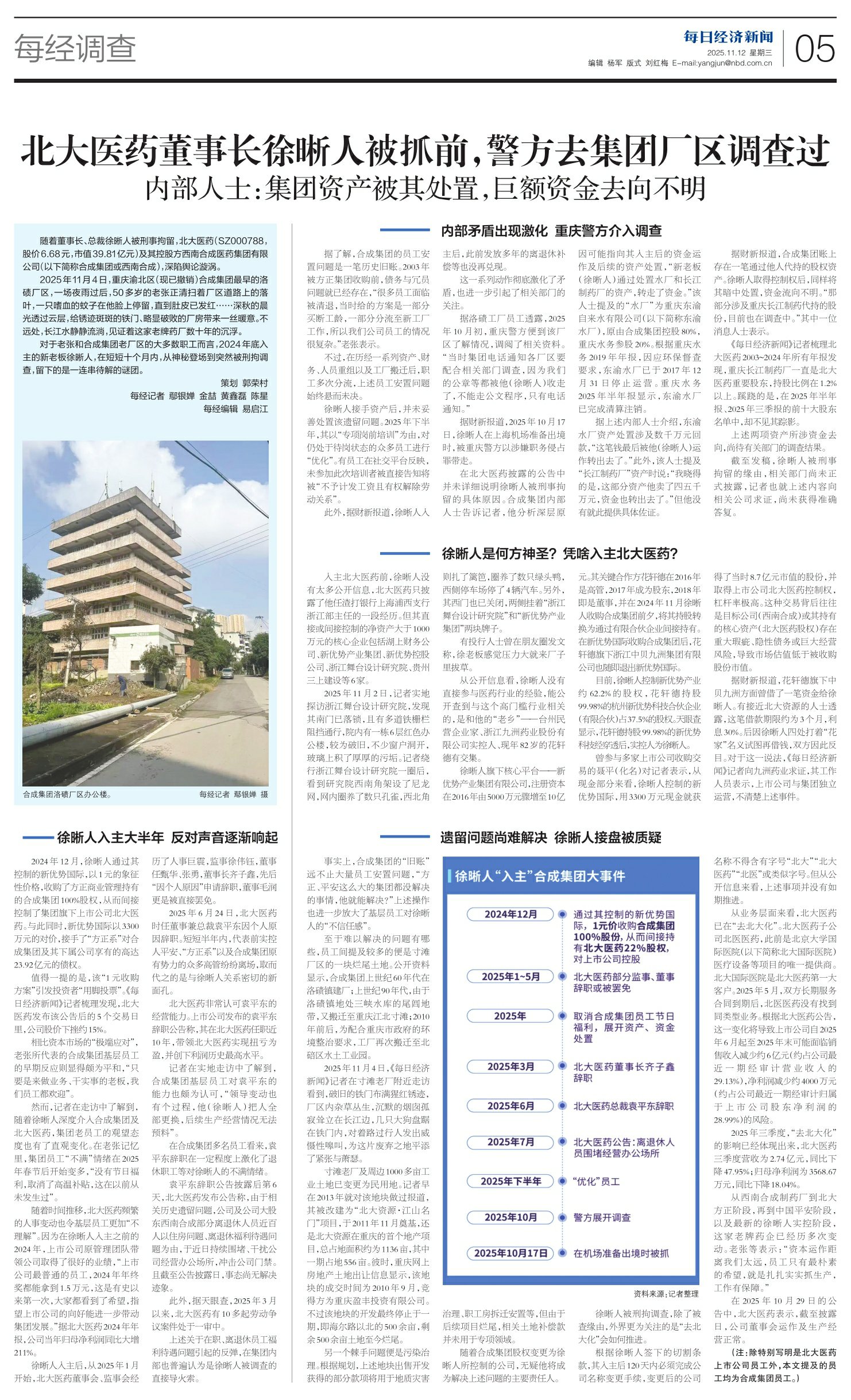 北大医药董事长徐晰人被抓前,警方去集团厂区调查过 内部人士:集团资产被其处置,巨额资金去向不明