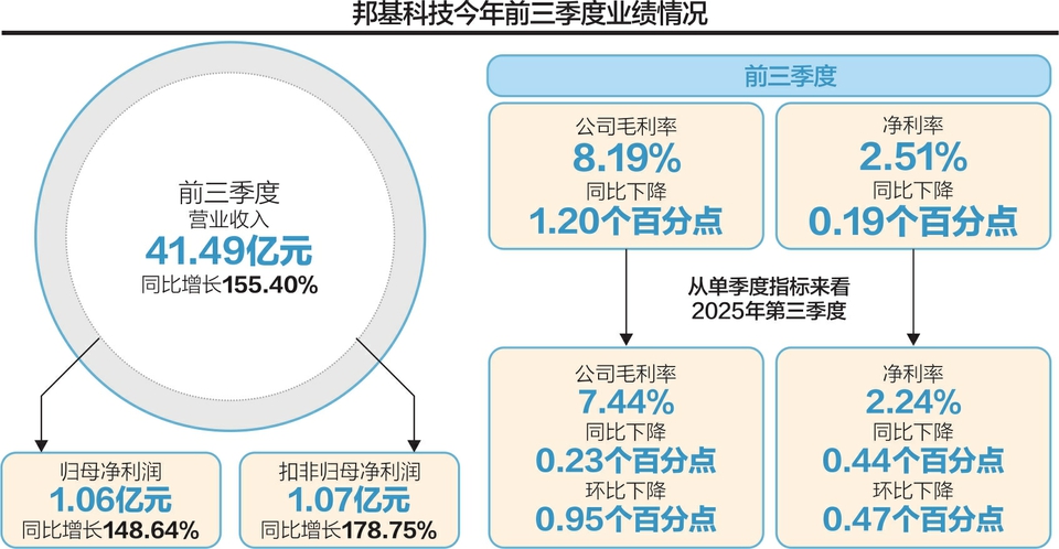 行业“内卷”的压力清晰地反映在邦基科技的财务报表上。交易预案显示,2022年、2023年及2024年,邦基科技归属于上市公司股东的扣除非经常性损益的净利润分别为1.10亿元、0.82亿元和0.51亿元,业绩逐年下降,存在业务转型的迫切需求。