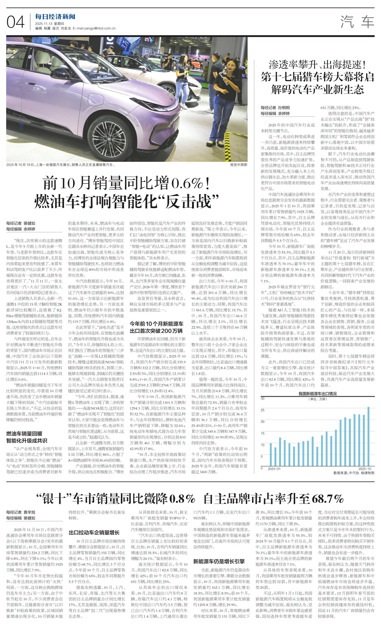 前10月销量同比增0.6%!燃油车打响智能化“反击战”