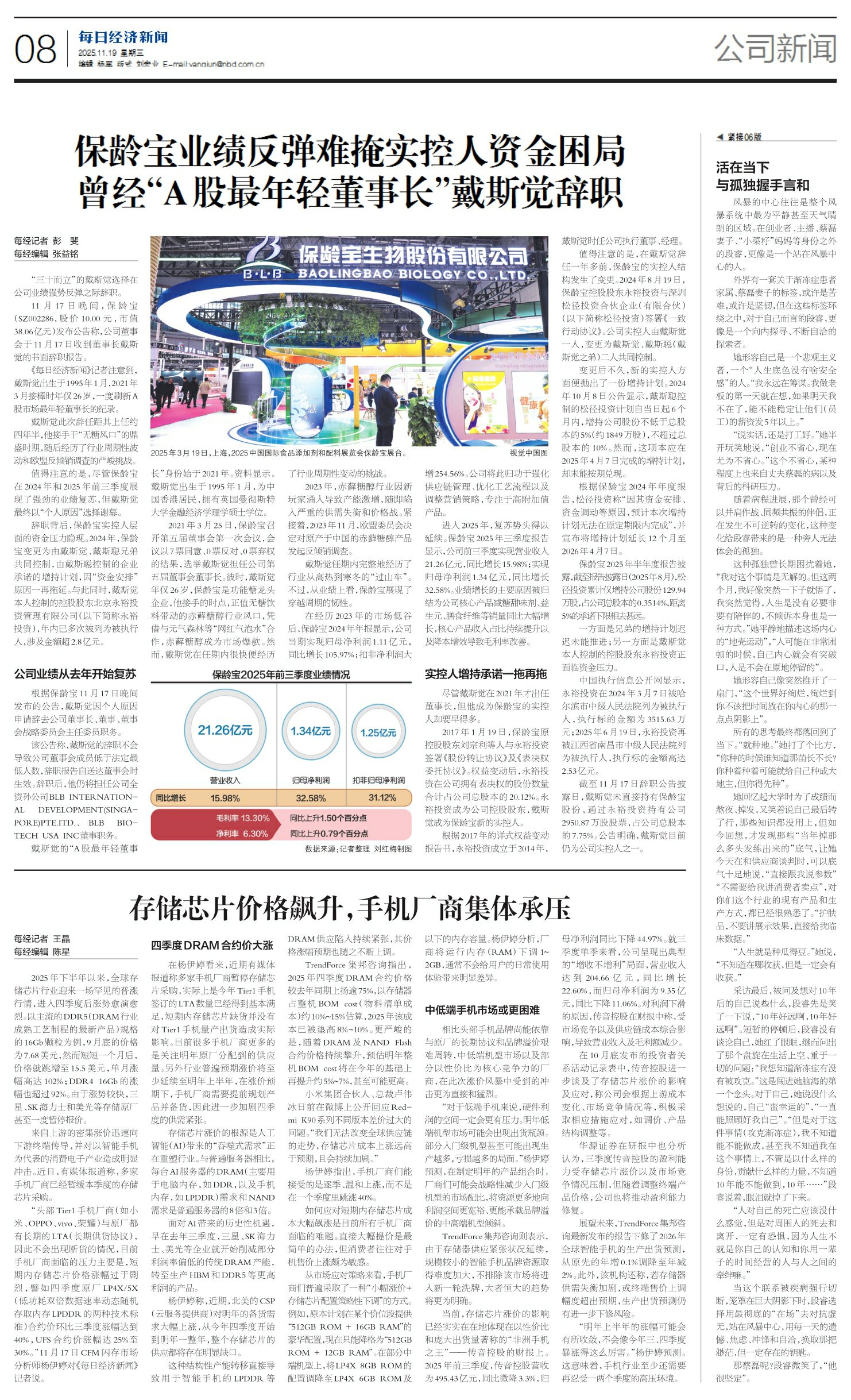 保龄宝业绩反弹难掩实控人资金困局 曾经“A股最年轻董事长”戴斯觉辞职