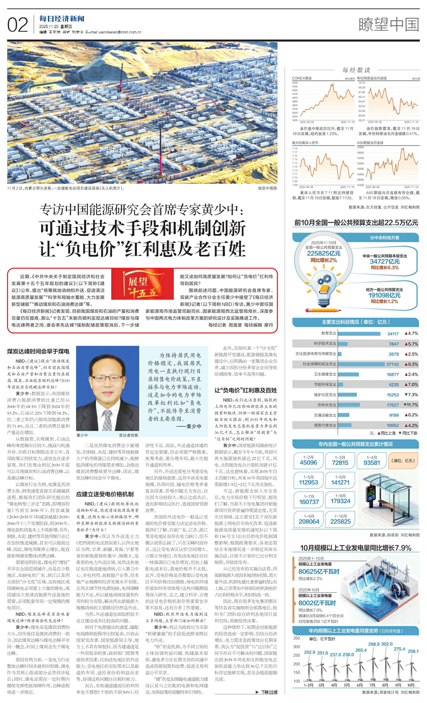 专访中国能源研究会首席专家黄少中:可通过技术手段和机制创新 让“负电价”红利惠及老百姓