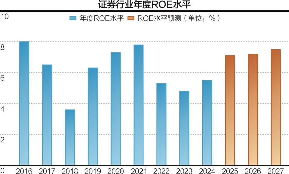业内预计,随着市场景气度持续回升,未来几年,证券行业的ROE水平有望稳步提升。