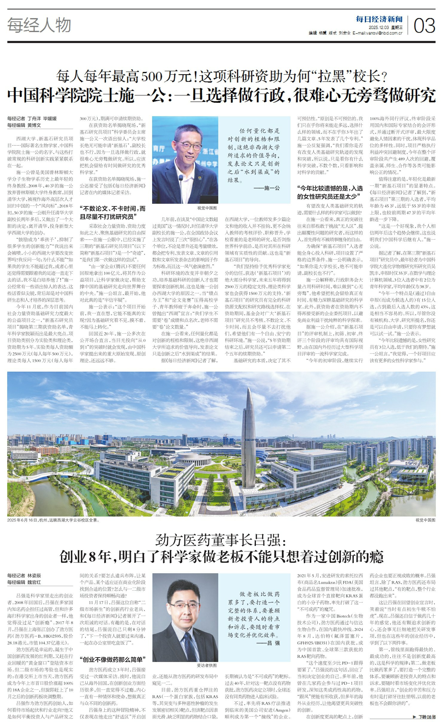 中国科学院院士施一公:一旦选择做行政,很难心无旁骛做研究