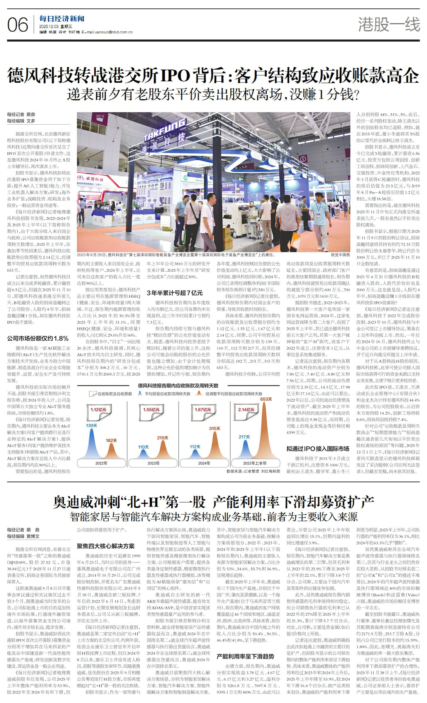 德风科技转战港交所IPO背后:客户结构致应收账款高企