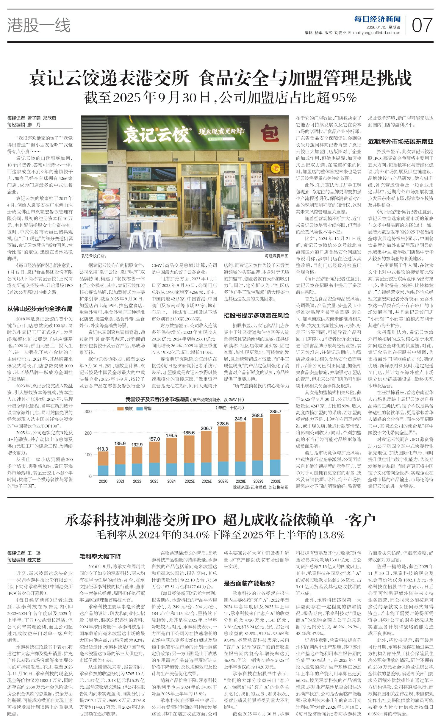 袁记云饺递表港交所 食品安全与加盟管理是挑战