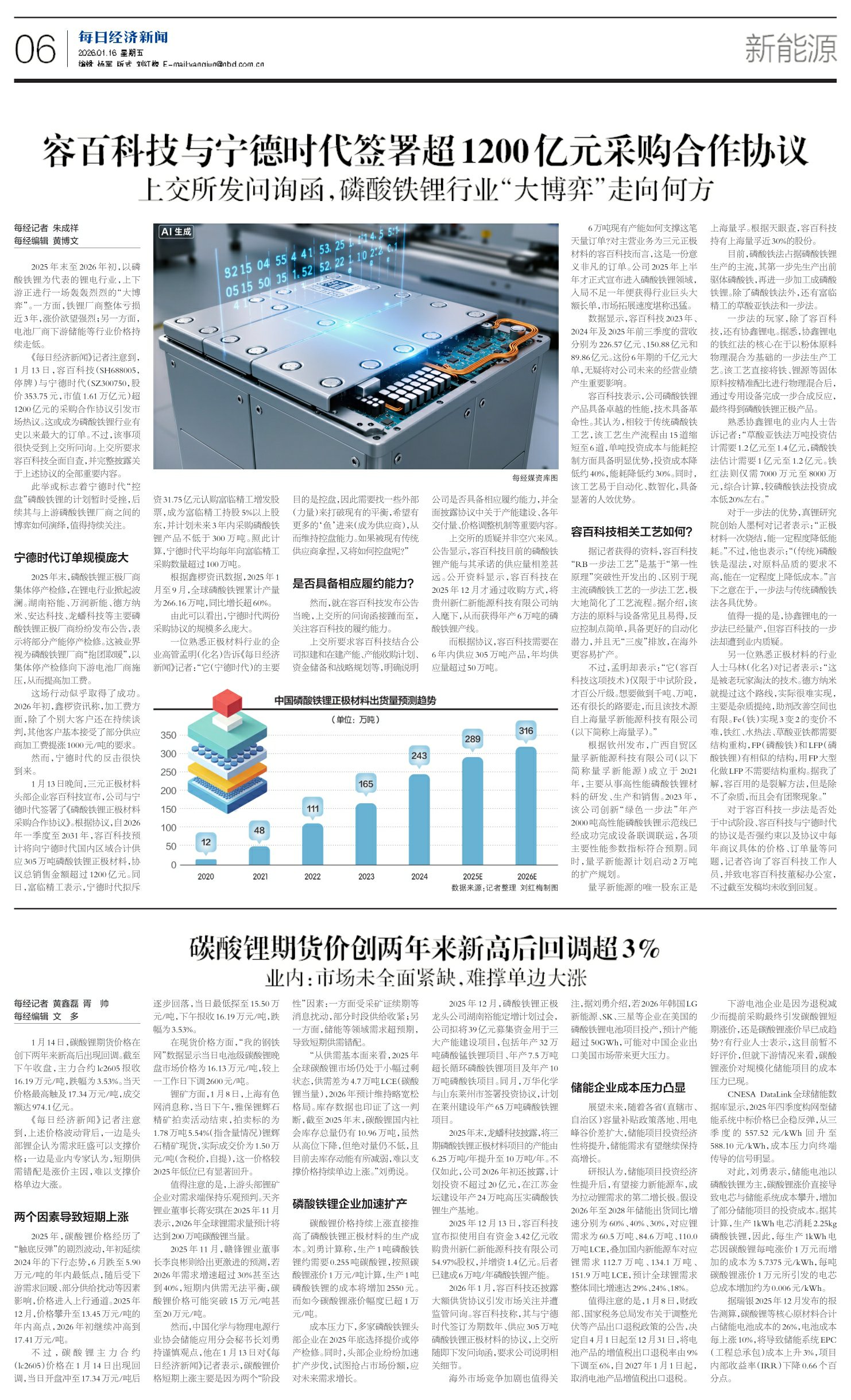 容百科技与宁德时代签署超1200亿元采购合作协议