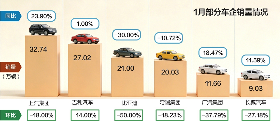 1月自主品牌销量整体呈“同比分化、环比普降”