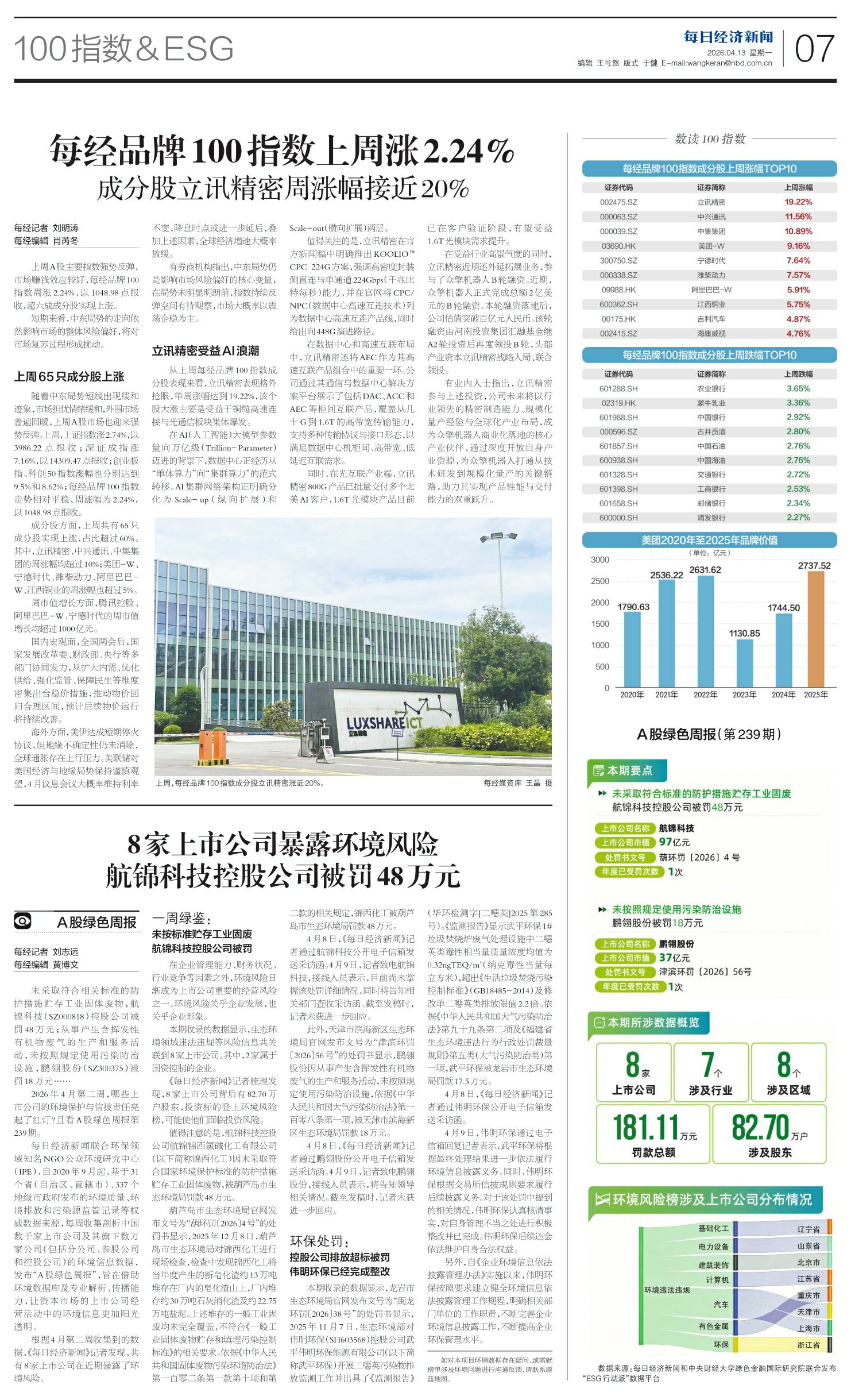 每经品牌100指数上周涨2.24%
