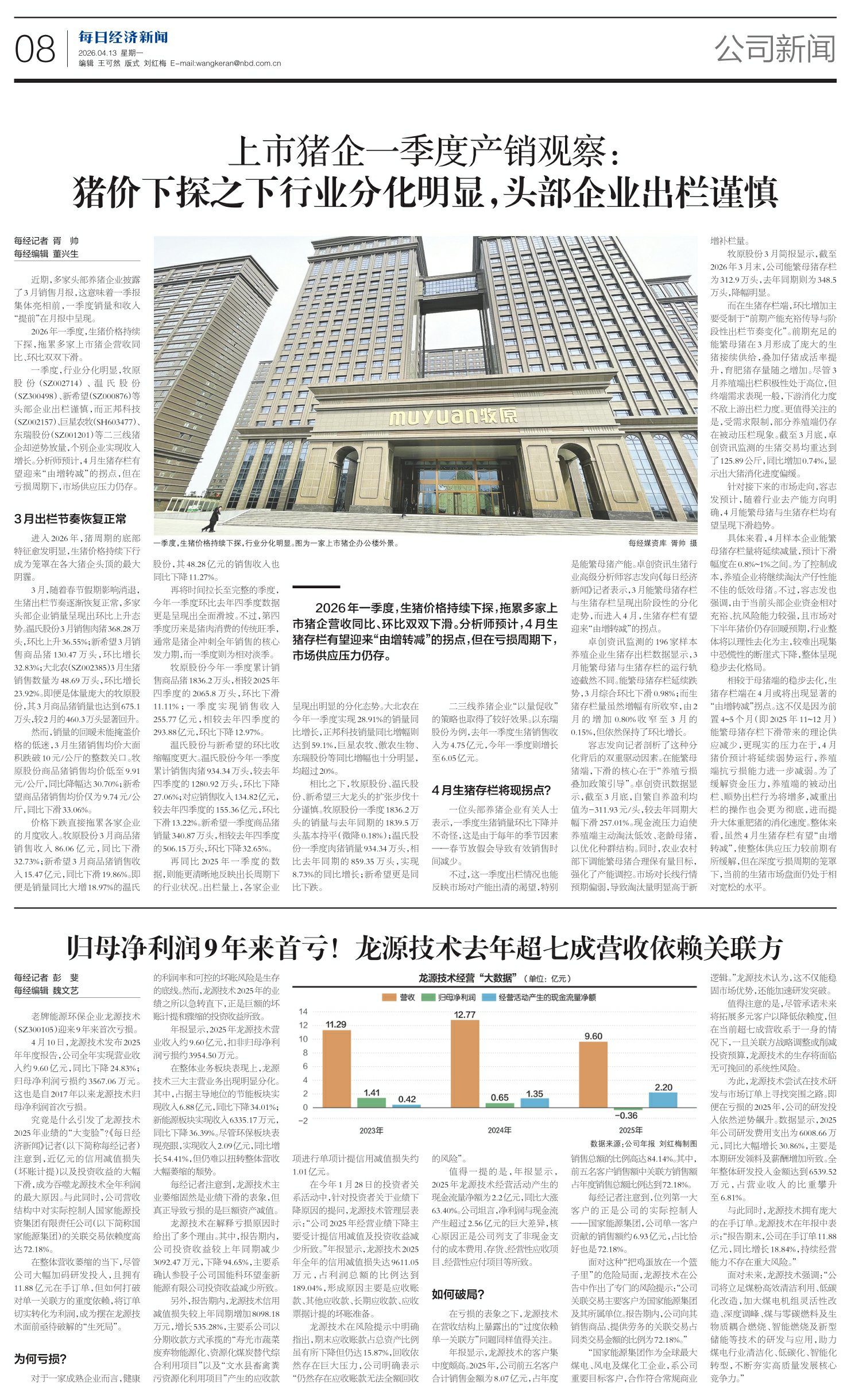 上市猪企一季度产销观察:猪价下探之下行业分化明显,头部企业出栏谨慎