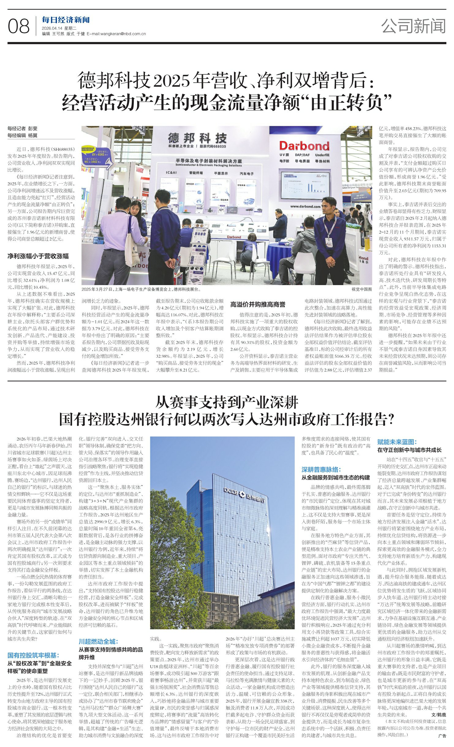 德邦科技2025年营收、净利双增背后:经营活动产生的现金流量净额“由正转负”