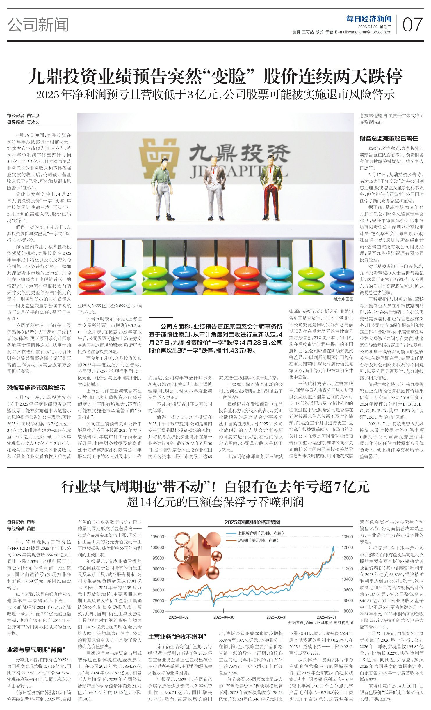 行业景气周期也“带不动”! 白银有色去年亏超7亿元